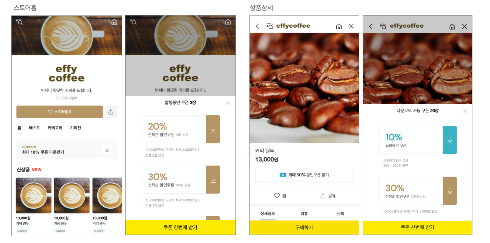 2) 스토어홈 / 상품상세 쿠폰 노출 예시